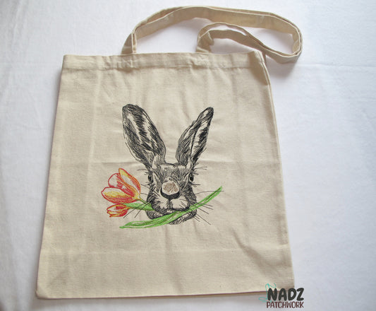 Gestickte Baumwolltasche Hase | mit langen Henkeln | Jutebeutel | Baumwolltasche | Einkauftstaschen | Stofftaschen | Hase | Canvastasche.