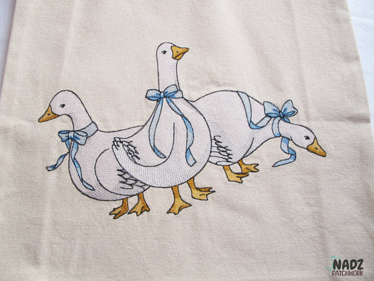Gestickte Baumwolltasche, mit langen Henkeln Jutebeutel | Baumwolltasche | Einkaufstaschen | Stofftaschen | Gänse | Canvastasche.