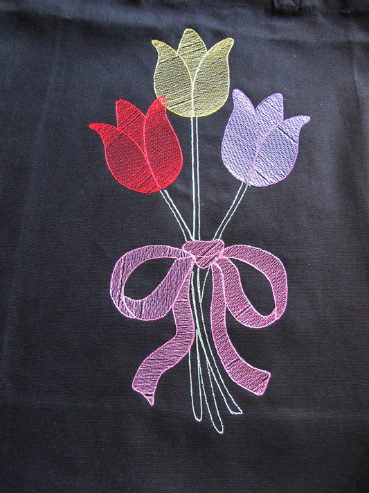 Tulpen| Gestickte Baumwolltasche | mit langen Henkeln | Jutebeutel | Baumwolltasche | Einkauf-Tatsachen | Stofftaschen | Canvastasche